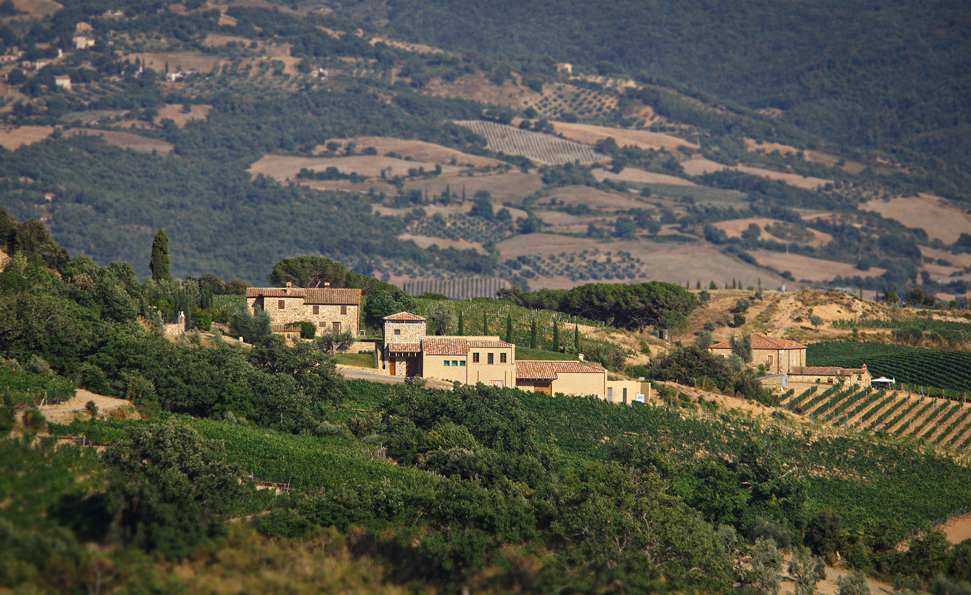 Belpoggio was established on a historic vineyard site in Montalcino in 2005 by Enrico Martellozzo and his wife Renata Rami, herself a great lover of the region of Tuscany and its wines. This tiny estate is located on some exceptional terroir in the village of Castelnuovo dell’Abate, sitting pretty at 400m above sea level on alternating layers of sandstone and volcanic subsoils. The couple named it Belpoggio, translating as ‘beautiful hill’, for indeed, it has some of the best views across Monte Amiata. It’s a special place with a unique microclimate, which although is known to be one of the warmer areas in Montalcino, is moderate when it counts, with the extinct volcano whipping cooler down to the site, and the Ombrone river below projecting it up during the heat of summer.